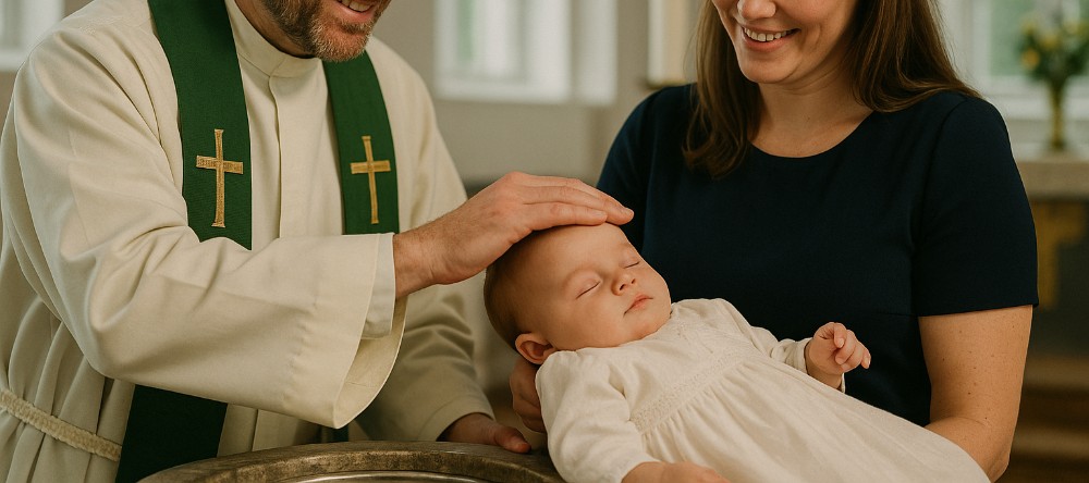 - Døypinga blir utført av ein prest i ei enkel og verdig seremoni.